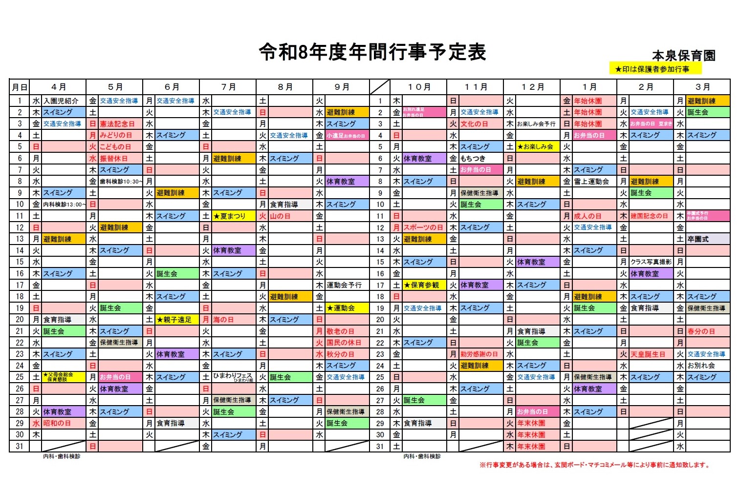 令和8年度 年間行事予定表
